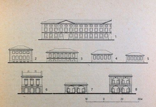Фасады примерныя против протчих вновь строющихся городов. 1770-е гг. 1—8: пояснения в тексте